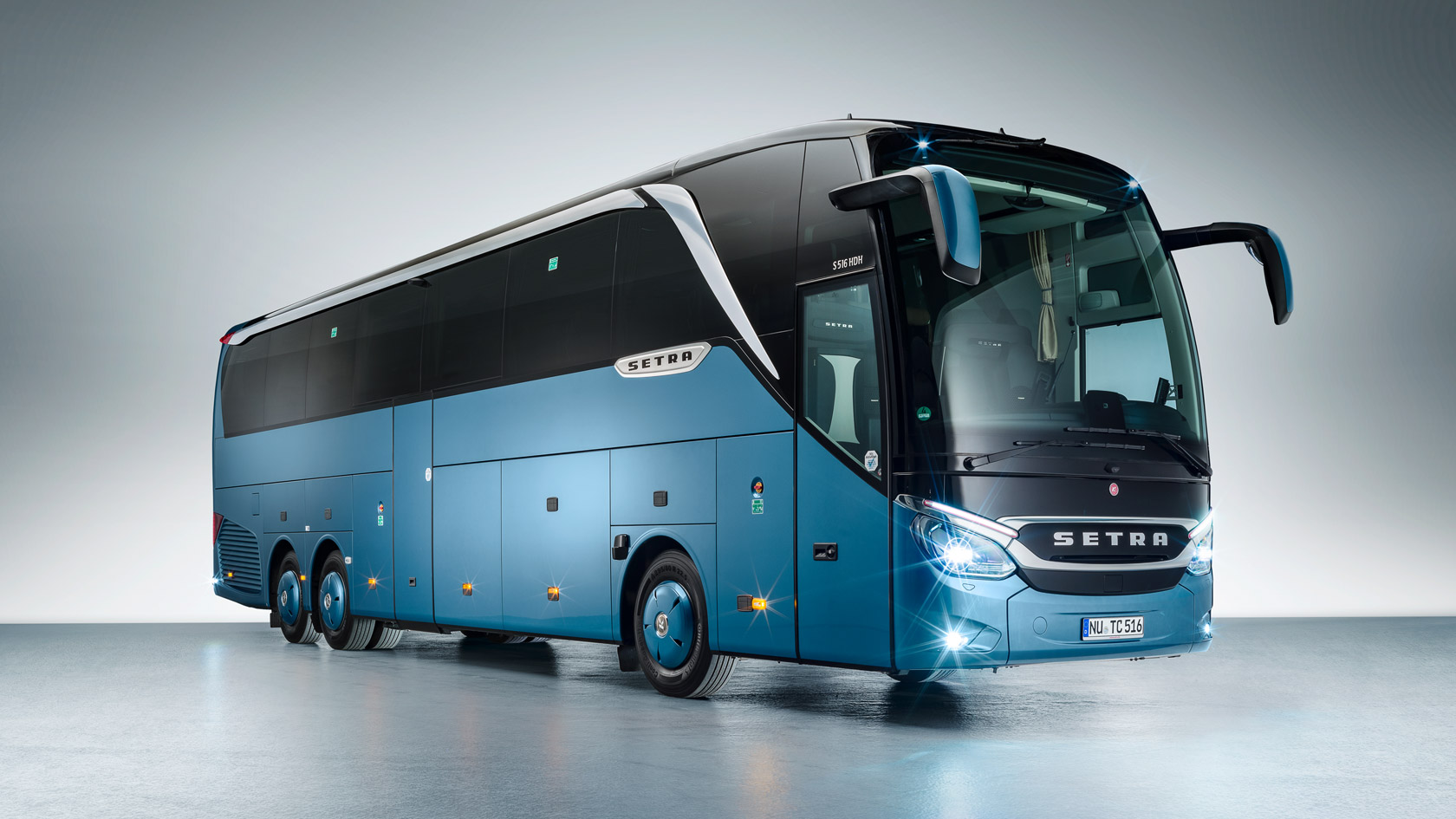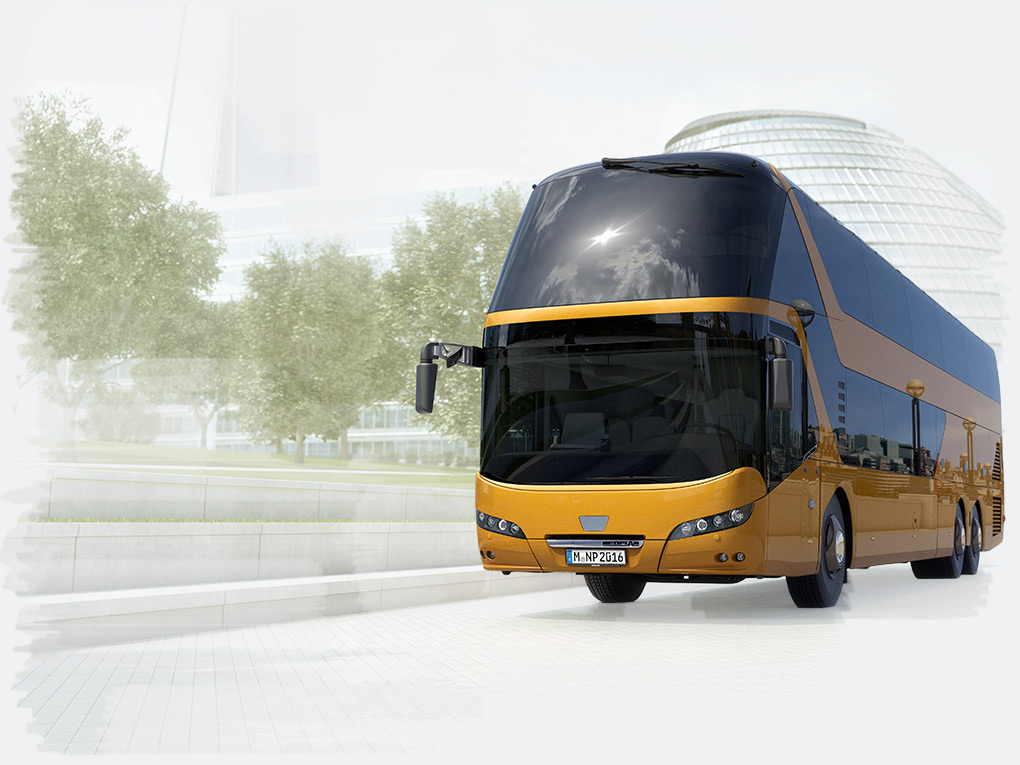 Autocarros de grande turismo, luxo, ar condicionado, wc, apoio para pés, luz individual, bancos confortáveis e anatómicos, tetos panorâmicos, com lotação de 36 a 82 lugares distribuídos por 1 ou 2 pisos, cozinha, bar, refeições ao lugar em autocarros Plus de 2 pisos.